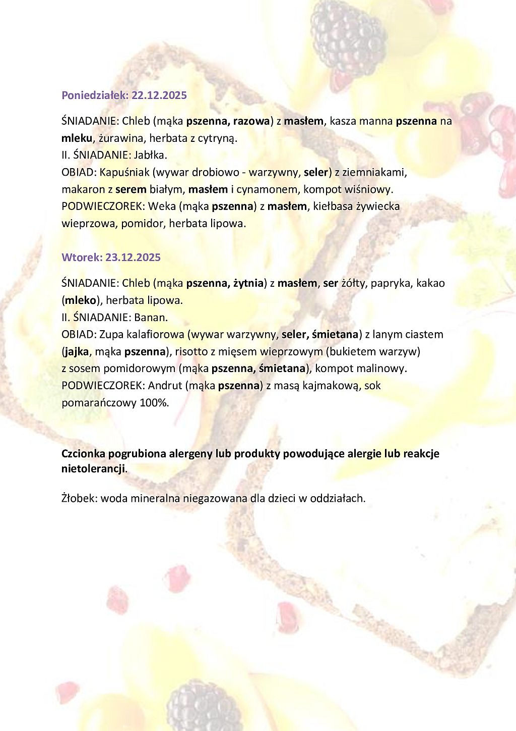 Stołówka - jadłospis