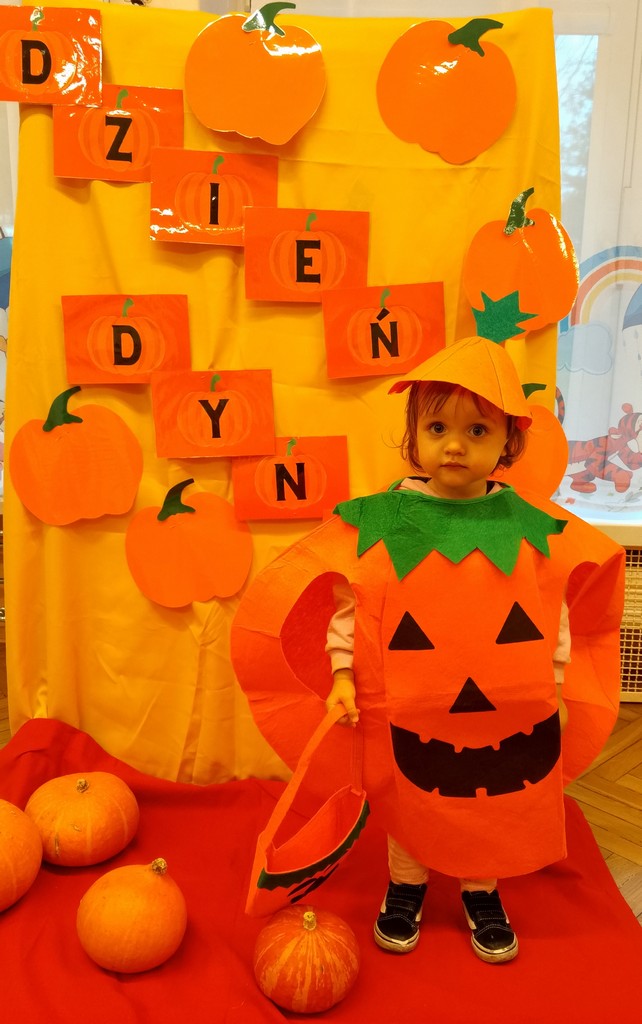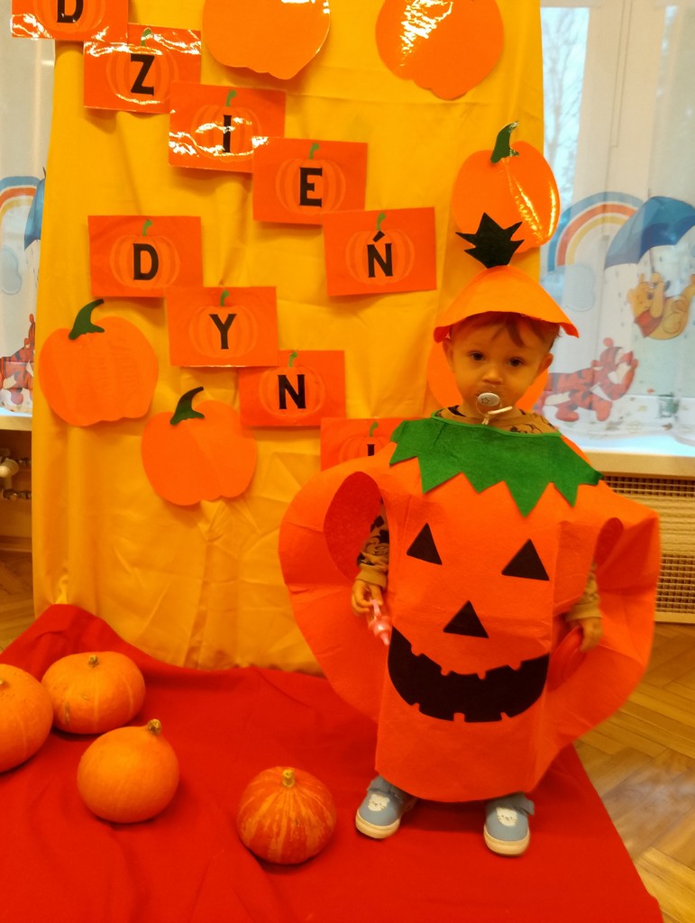 31 października obchodzimy Dzień Dyni, jest to okazja do nauki przez zabawę podczas której dzieci poznają dynię jako zdrowe warzywo. Tego dnia dla dzieci z grupy Motylki Miejskiego Żłobka nr 1 w Gorlicach przygotowanych było wiele różnych ciekawych zajęć. Pani czytała dzieciom książeczkę o dyniach, ich rodzajach, budowie oraz walorach odżywczych. Następnie dzieci wzięły udział w zajęciach sensoplastycznych, podczas których wyklejany dynię wykorzystując różne faktury, kasztany, żołędzie, szyszki, bibułkę i papier kolorowy. Były też zdjęcia w stroju Pani Dyni, które sprawiły dzieciom wiele radości.