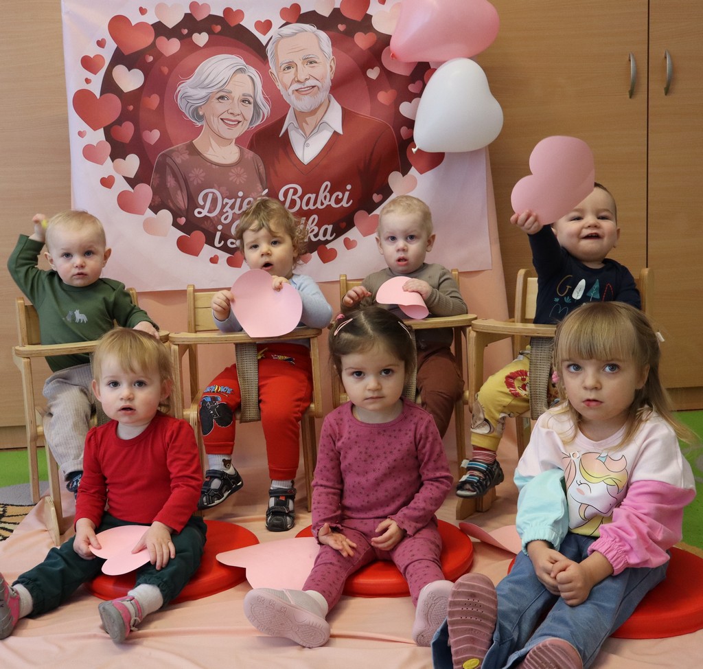 Babcia i dziadek to ważne osoby w życiu każdego maluszka. Dzieci chcąc okazać swoją miłość i wdzięczność wręczają laurki dla ukochanych babć i dziadków, żłobkowicze z grupy "Pszczółki" ozdabiali serduszka dla swoich bliskich.