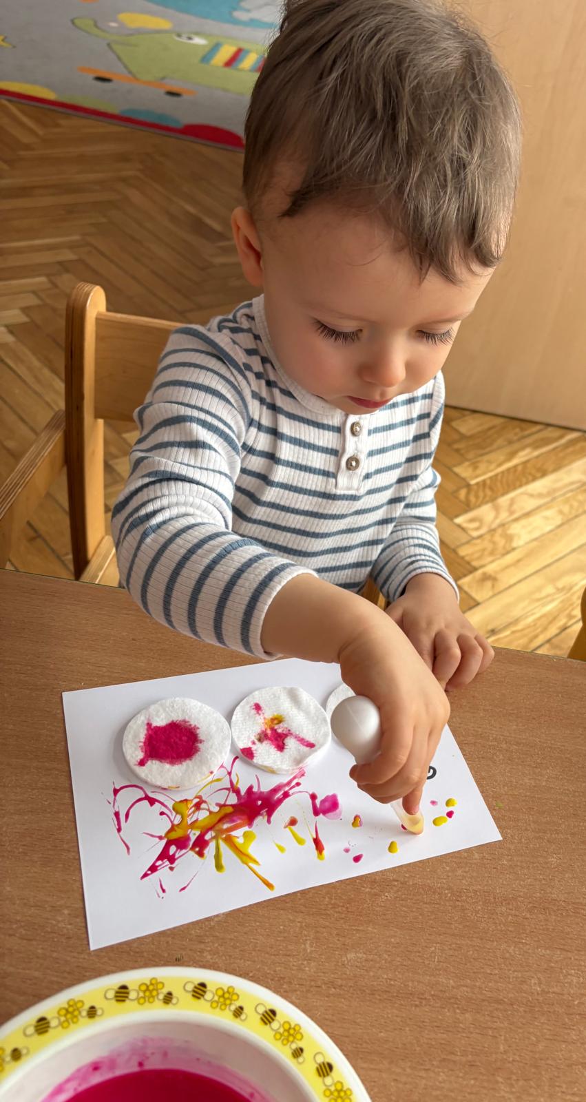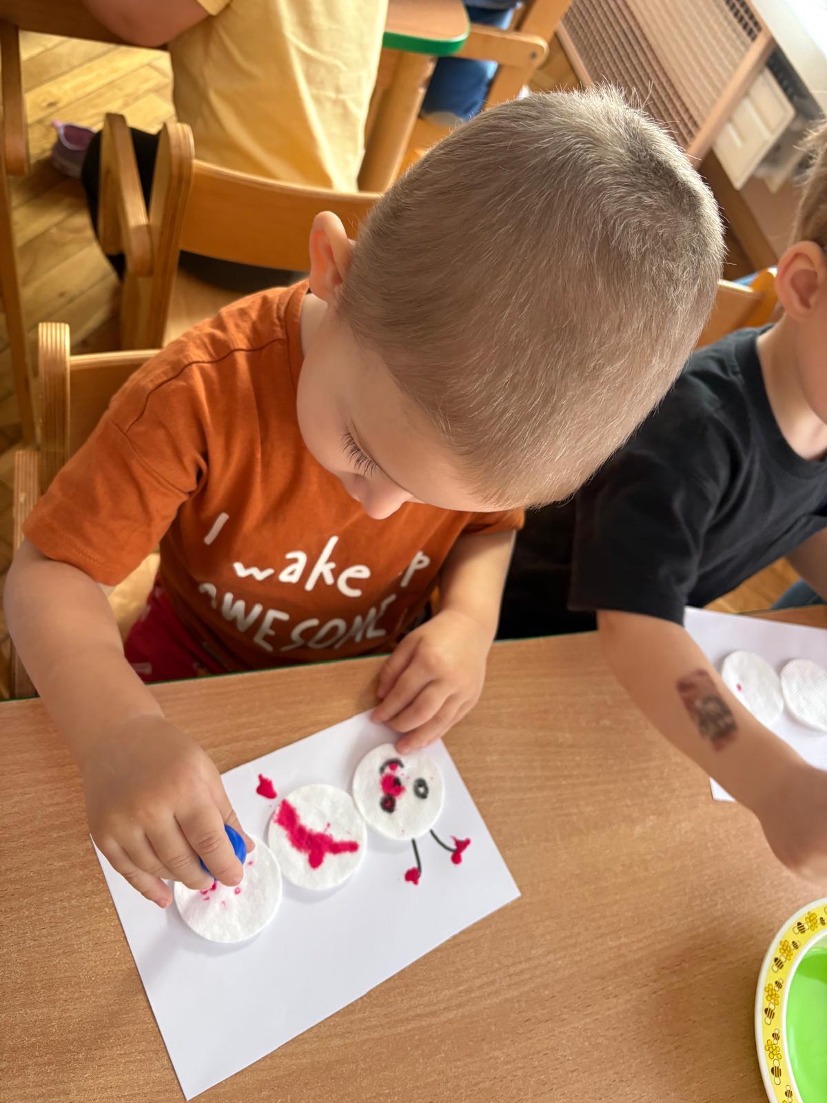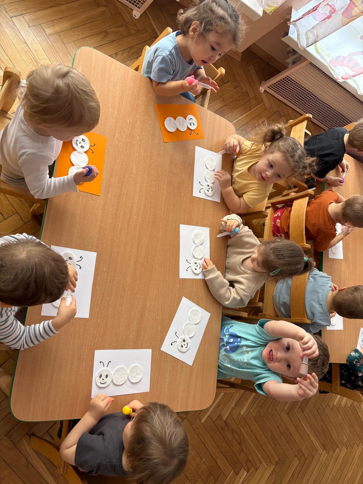 W grupie Motylki Miejskiego Żłobka nr 1 w Gorlicach odbyły się kolejne ciekawe zajęcia plastyczne, tym razem z wykorzystaniem pipet. Nasze Maluszki ćwiczyły swoje małe rączki napełniając pipety farbą i malując metoda kropelkową wacikowe robaczki. Powstały barwne prace.