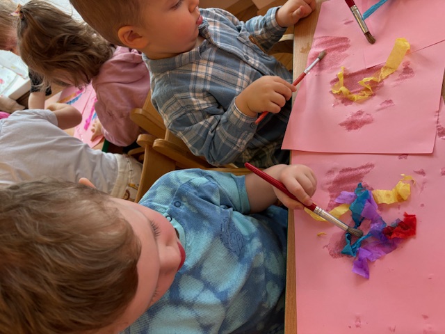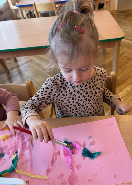 Malowanie bibułą w grupie Motylki