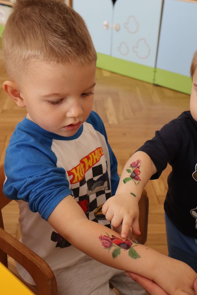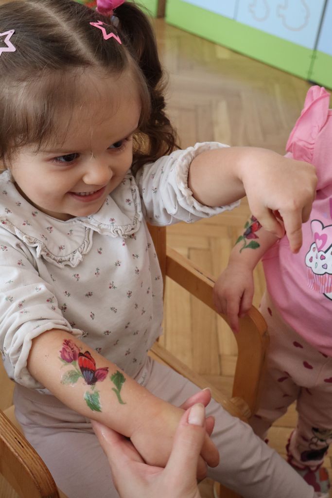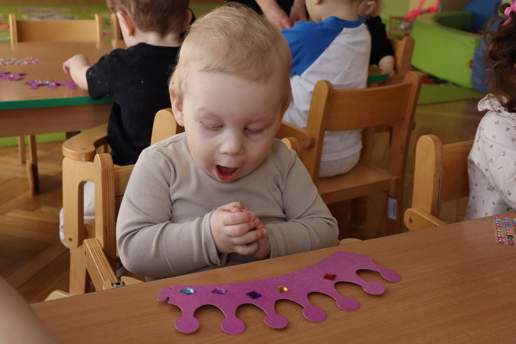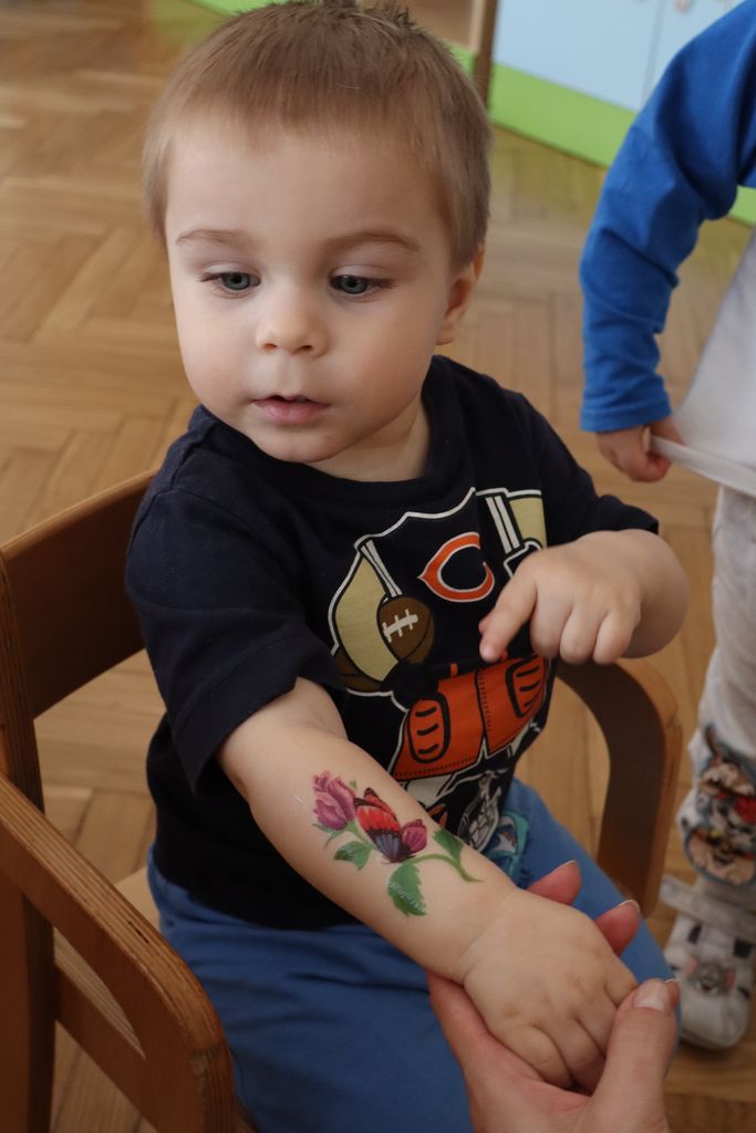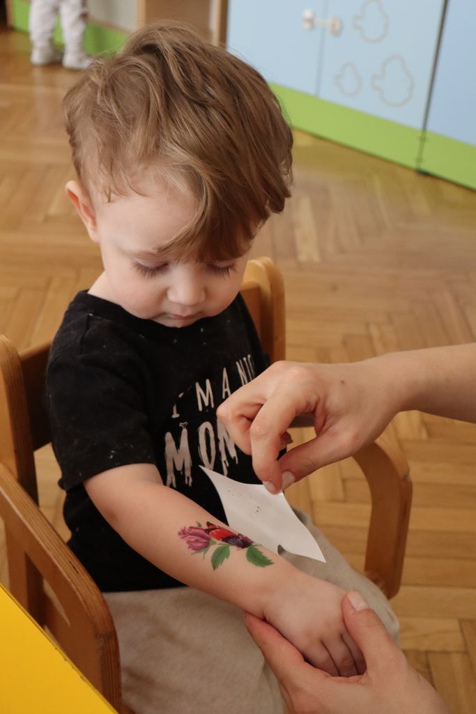 8 marca to szczególny dzień, w którym świętują wszystkie kobiety. Nasze malutkie Pszczółki otrzymały drobne upominki. Wszyscy wspólnie ozdobili piękne korony, a kto odważniejszy – wyszedł w tym dniu do domu z „tatuażem” na rączce:)