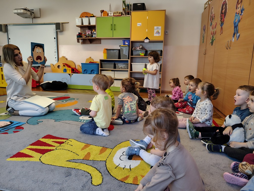 Drukuj Powrót do poprzedniej strony Zajęcia z emocji w Motylkach 24.03.2026 8:27 Treść W grupie Motylki odbyły się zajęcia podczas których dzieci poznawały emocje: radość, smutek, gniew, strach, złość, zdziwienie. Dzieci nazywały emocje na kartach a następnie starały się je naśladować.